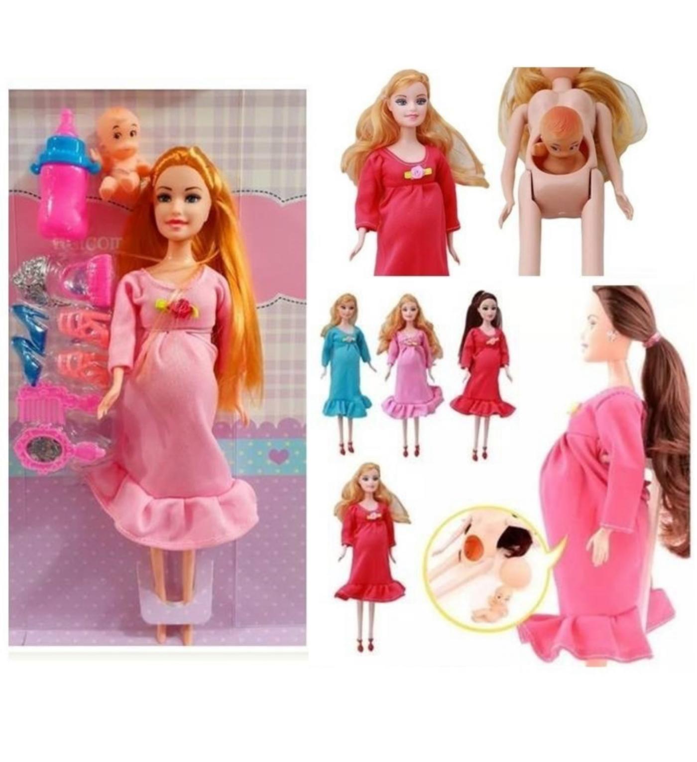 Muñeca Embarazada con Bebe y Acce. Caja: 33x13cm.