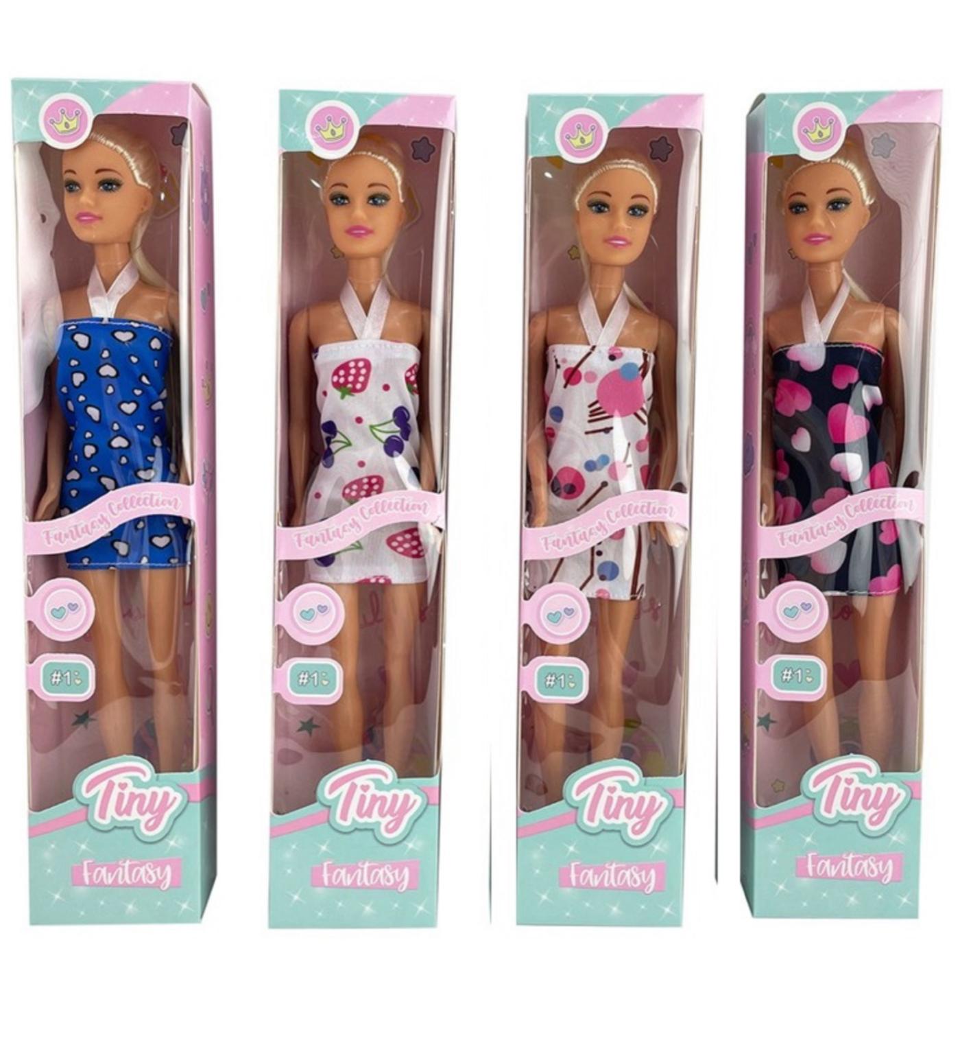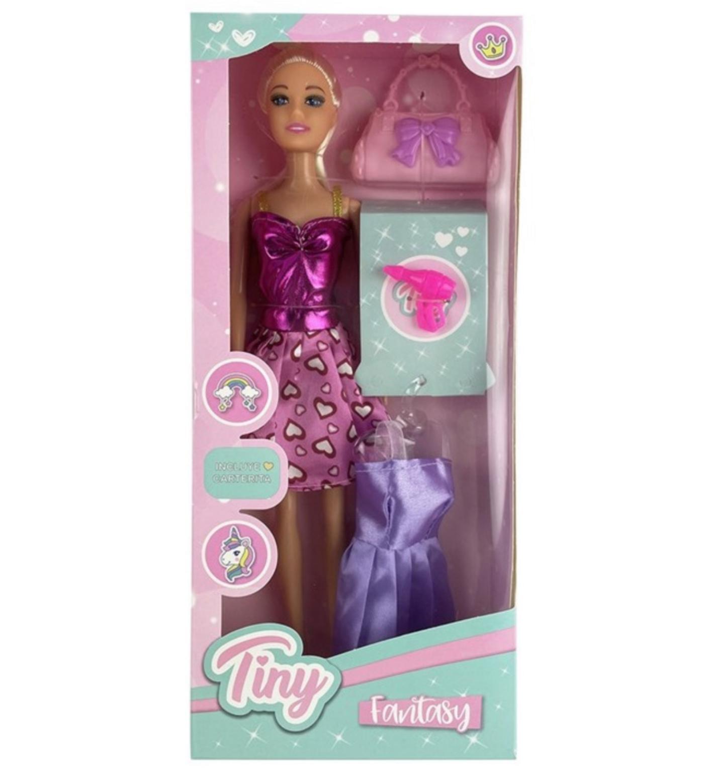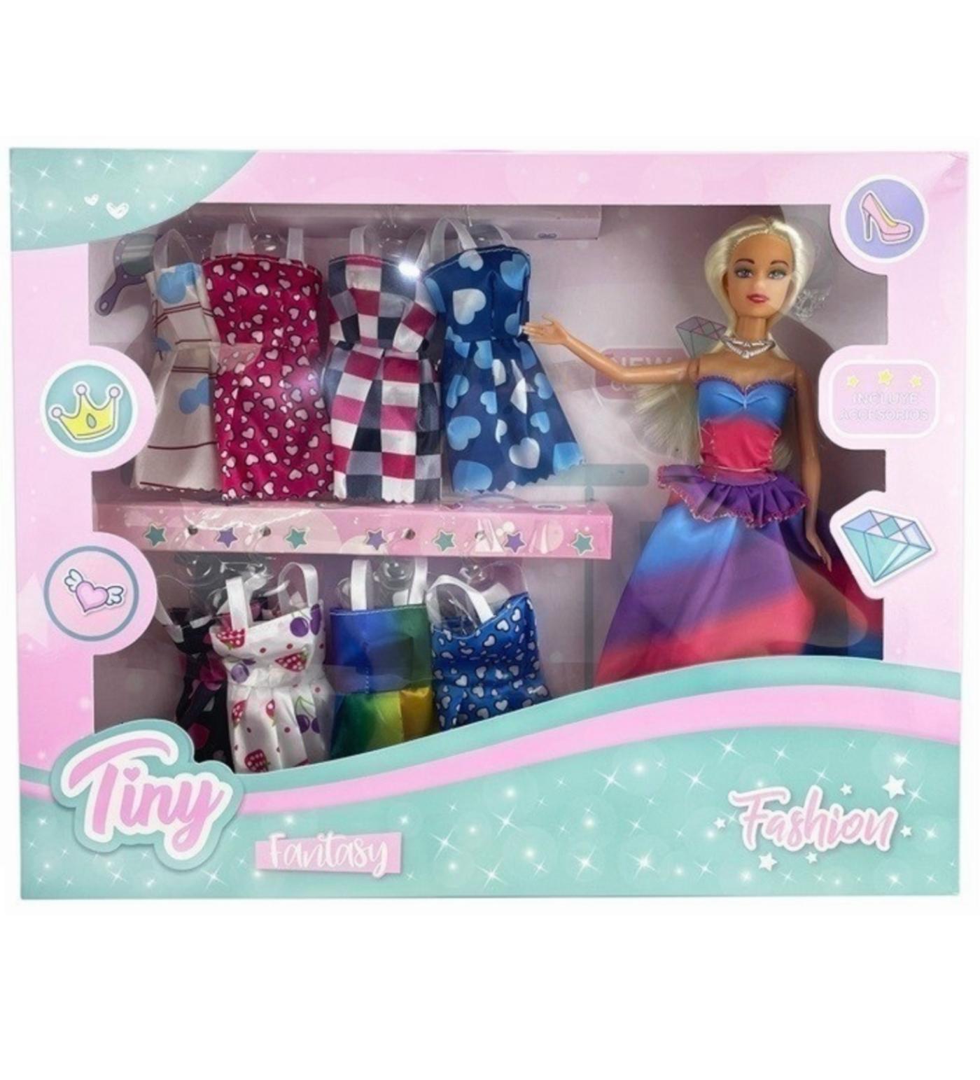 Muñeca Tiny Fashion con vestidos en caja 42x33x6cm