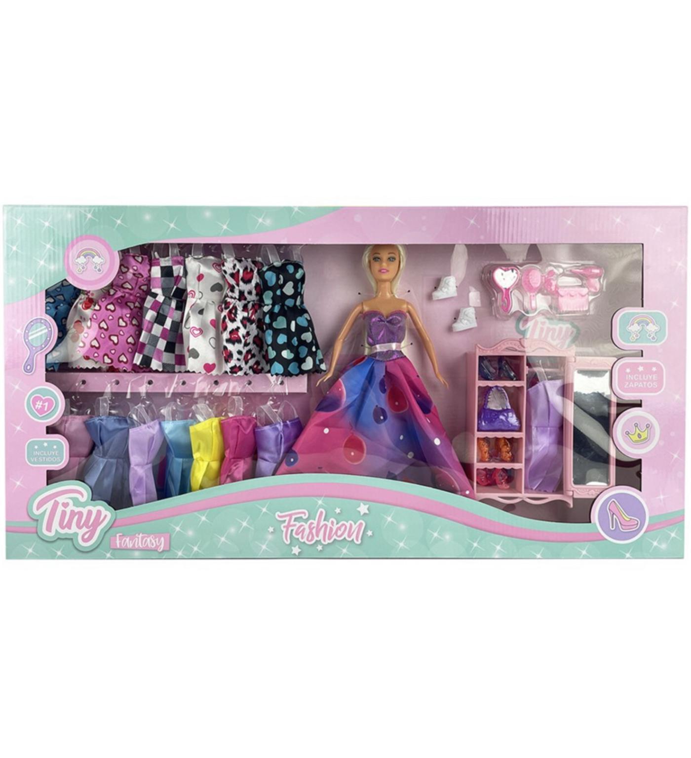 Muñeca Tiny Fashion con vestidos caja 64x33x6cm