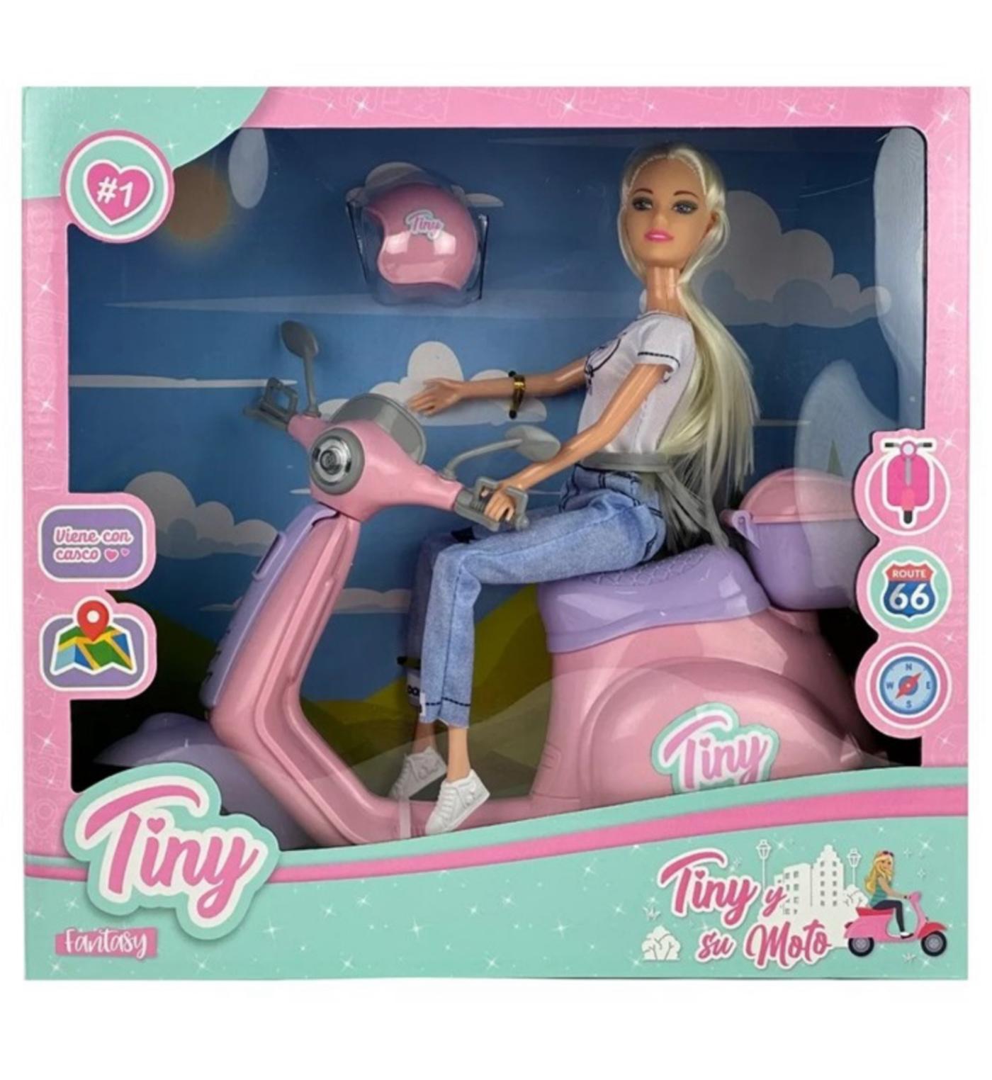 Muñeca Tiny con Moto y accesorios en caja 33x31x10cm