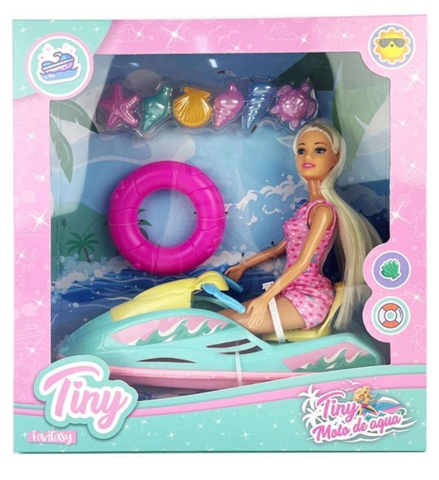 Muñeca Tiny en moto de agua con accesorios caja 28x28x8cm