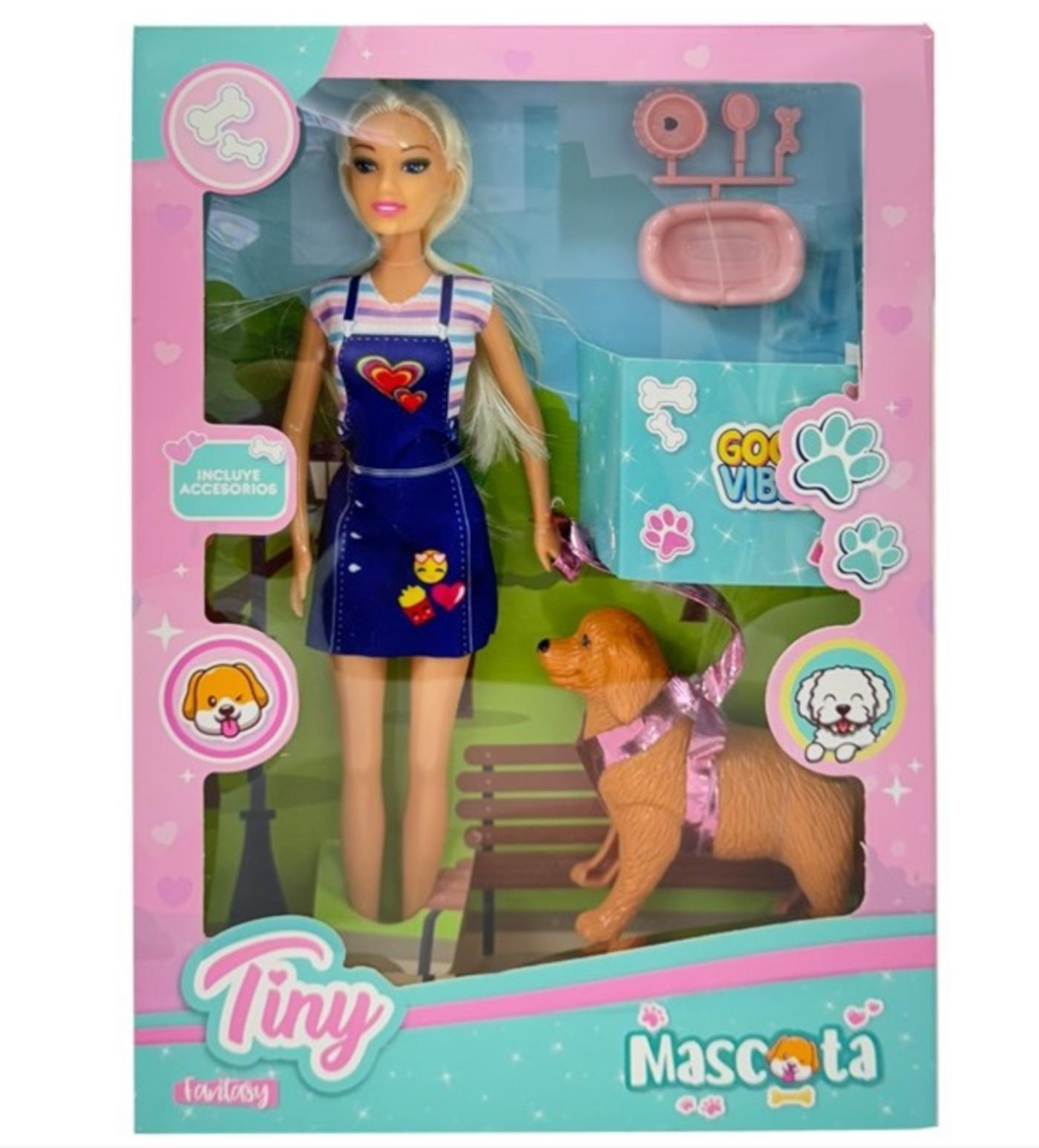 Muñeca con Macota y accesorios en cja 23x32x5cm